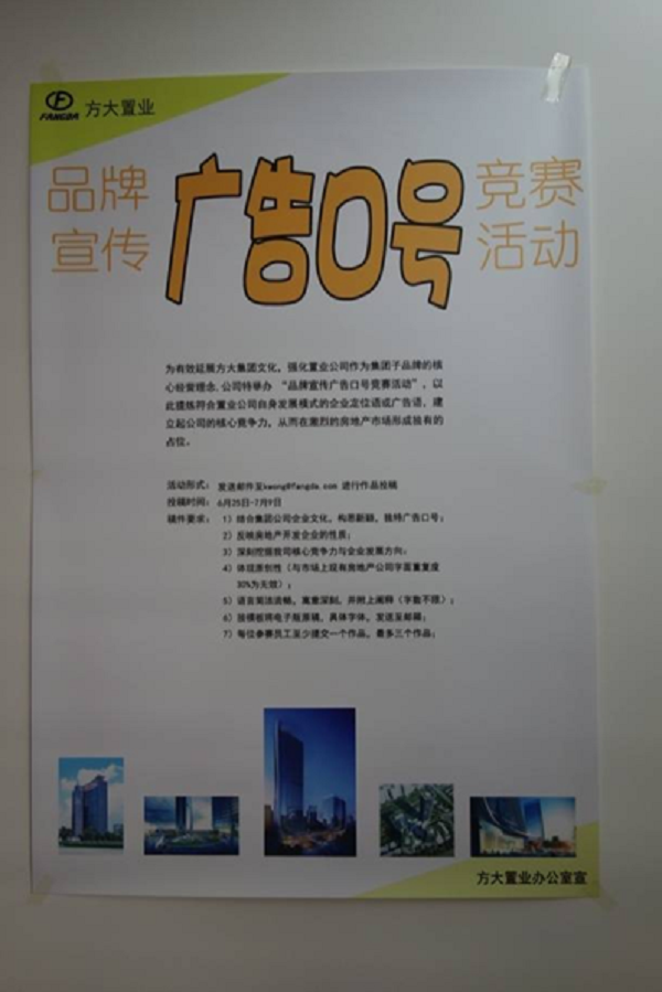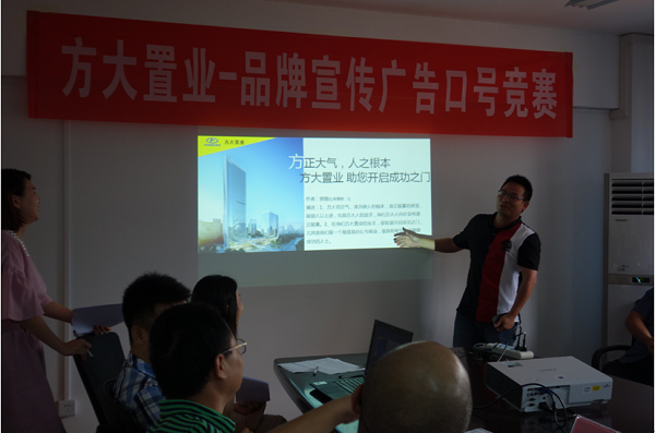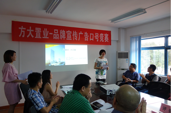 7月16日,方大置業(yè)“品牌宣傳廣告語(yǔ)口號(hào)競(jìng)賽”活動(dòng)決賽在方大廣場(chǎng)綜合樓三樓會(huì)議室舉行。經(jīng)過(guò)三周時(shí)間的征稿、作品展示、初選、復(fù)選,最終選出了十篇優(yōu)秀作品進(jìn)入決賽。方大置業(yè)總經(jīng)理及相關(guān)領(lǐng)導(dǎo)、辦公室和營(yíng)銷策劃部負(fù)責(zé)人擔(dān)當(dāng)本次決賽評(píng)委。
