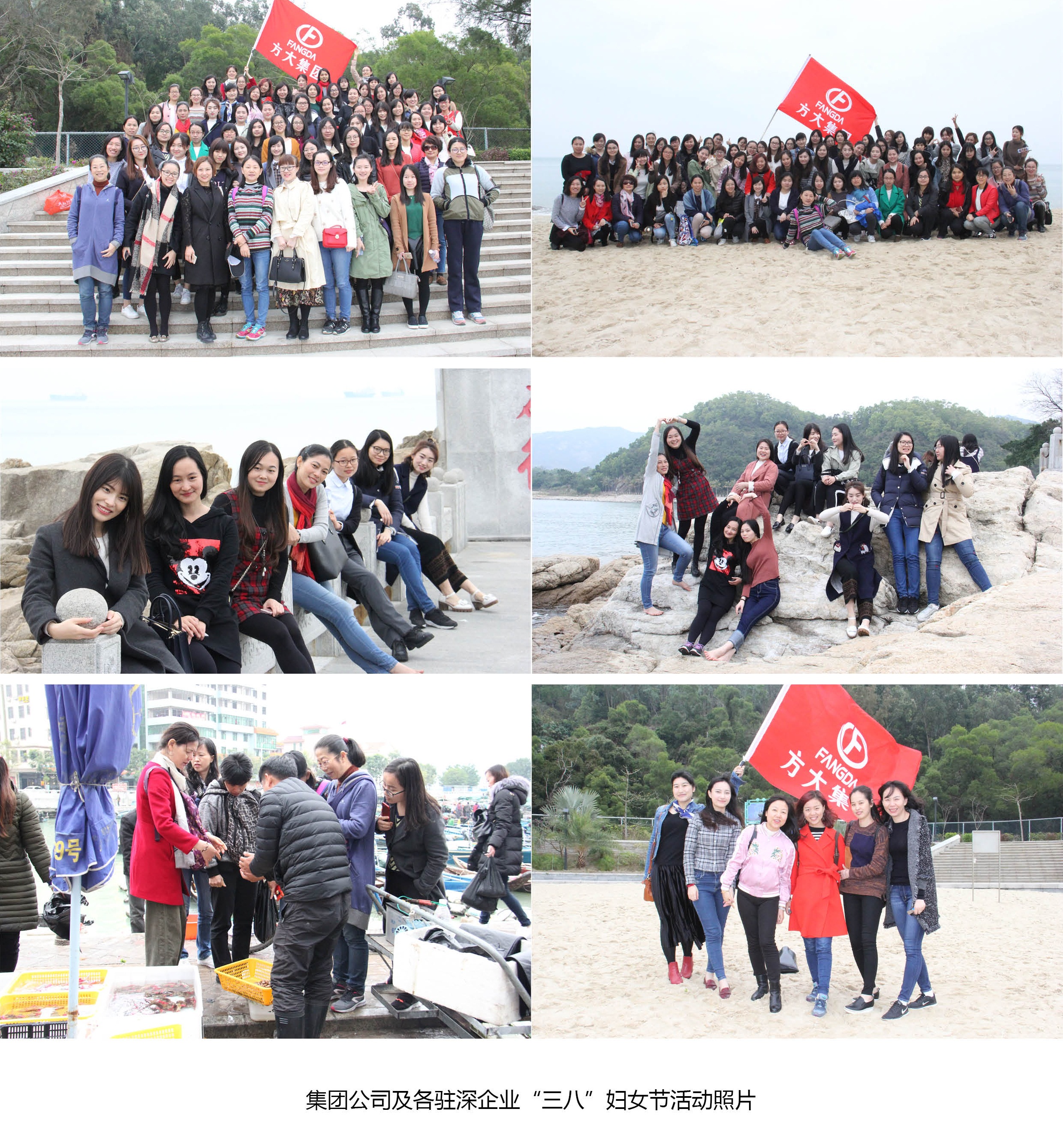 在深圳,集團公司及各駐深企業(yè)組織全體女員工前往深圳東部海岸進行休閑觀光及聚餐活動。下午1點30分,駐深企業(yè)女員工一行80余人在深圳方大大廈集結(jié)完畢,隨即分乘兩輛大巴前往深圳東部官湖角海灘。約90分鐘車程后,觀光團達到目的地。在這個屬于女性同胞的節(jié)日里,天公也別樣作美,上午淅瀝瀝的大雨,一到下午就停了,地面積水也逐漸干了。美麗的官湖角海灘上,暖風(fēng)輕拂,碧海一望無際。美麗的方大女員工們在海灘上合影留念,結(jié)伴游玩。她們或放眼眺望欣賞海景,或高舉手機專注地自拍,或并肩攜手踏浪,其樂融融。離開官湖角海灘后,方大女員工們一道專程前往惠陽澳頭村聚餐,一品滋美的海鮮大餐。