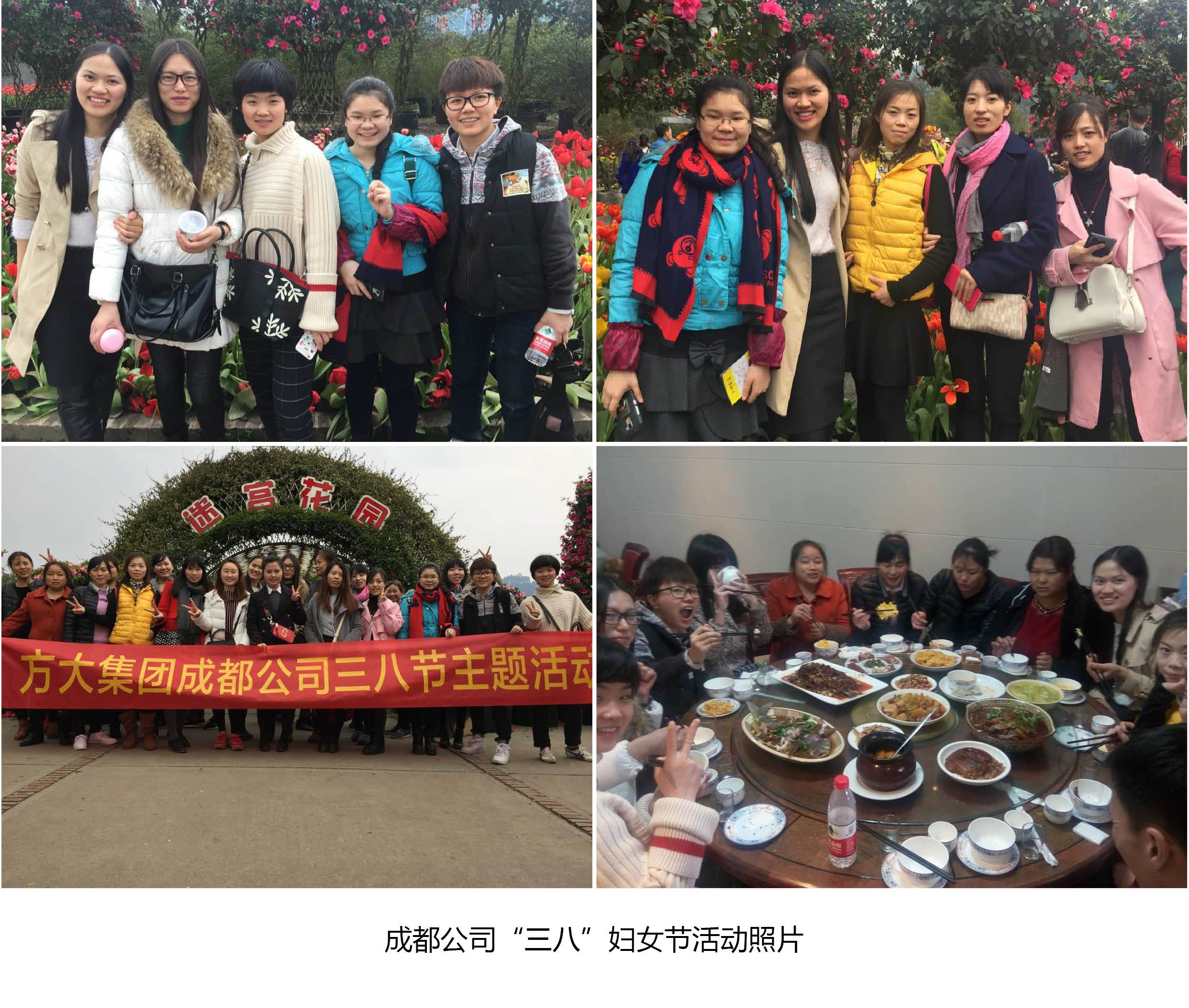 在成都,成都公司組織全體女員工前往位于成都市南郊的“花舞人間”國家4A級景區(qū)進行半日游活動。期間,大家進行了賞花、趣味小游戲和聚餐等。此次活動有效的增進了方大成都公司女員工彼此間的情誼,豐富了公司的企業(yè)文化。