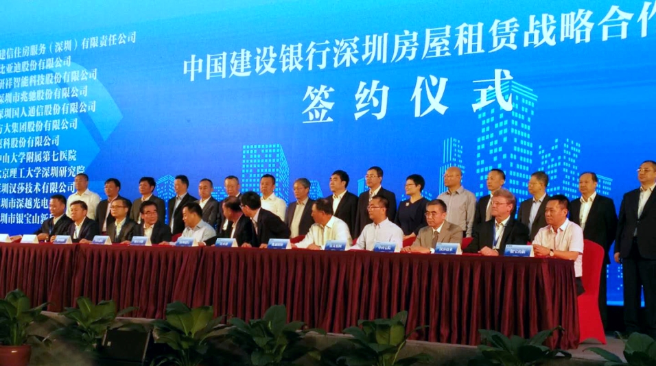 【新華社深圳11月3日電】 3日,建設(shè)銀行深圳分行與招商、華潤(rùn)、萬科、恒大、中海、碧桂園、星河等11家房地產(chǎn)公司,以及比亞迪、方大集團(tuán)、研祥智能、兆馳等11家企事業(yè)單位舉行住房租賃戰(zhàn)略合作簽約儀式,推出5000余套包括“CCB建融家園”在內(nèi)的長(zhǎng)租房源,并發(fā)布個(gè)人住房租賃貸款產(chǎn)品,標(biāo)志著建設(shè)銀行正式進(jìn)軍深圳住房租賃市場(chǎng)。