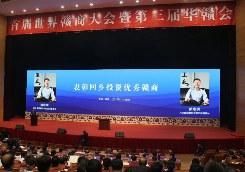 11月28日,首屆世界贛商大會(huì)暨第三屆華贛會(huì)在江西省南昌市隆重舉行,方大集團(tuán)股份有限公司董事長(zhǎng)熊建明榮獲“首屆江西省回鄉(xiāng)投資優(yōu)秀贛商”稱(chēng)號(hào)。全國(guó)人大常委會(huì)副委員長(zhǎng)、民建中央主席陳昌智、國(guó)務(wù)院僑務(wù)辦主任裘援平、江西省委書(shū)記鹿心社、江西省長(zhǎng)劉奇以及海內(nèi)外知名贛商代表、社科界贛籍知名人士等約1500人共同出席了開(kāi)幕式。