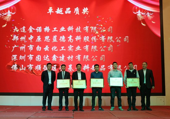 大連金諾格工業(yè)科技有限公司、鄭州中原思藍(lán)德高科股份有限公司、廣州市白云化工實(shí)業(yè)有限公司、深圳市固達(dá)鑫建材有限公司、佛山市順德區(qū)榮基塑料制品有限公司